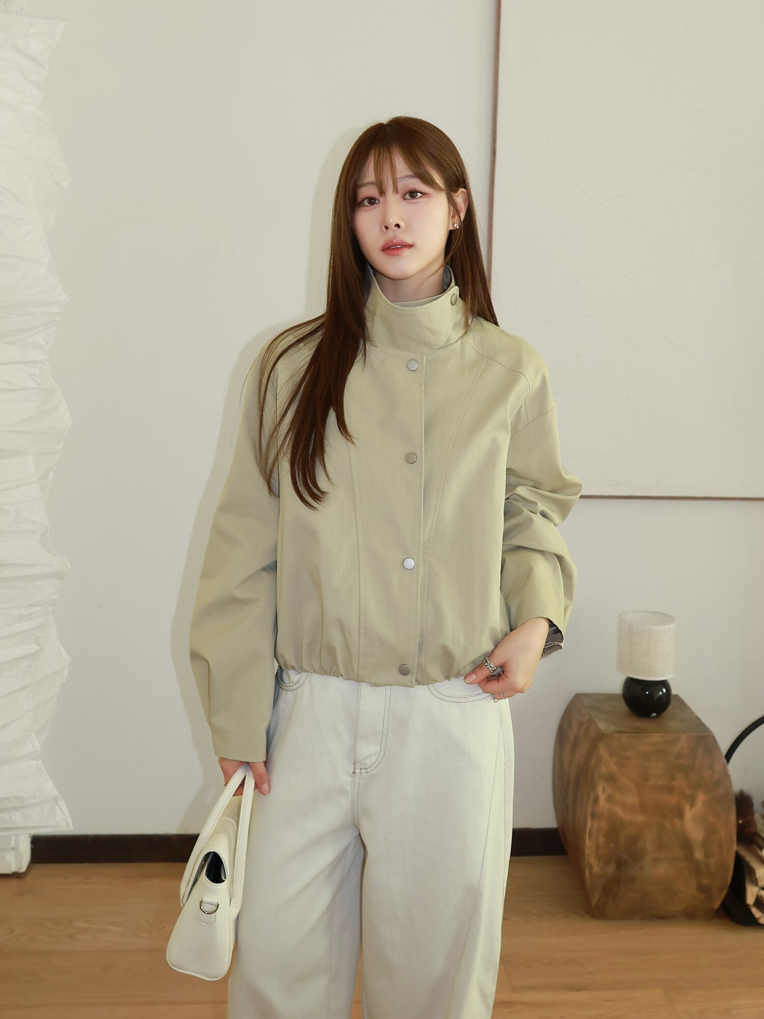 오버핏 밴딩 하이넥 숏 재킷