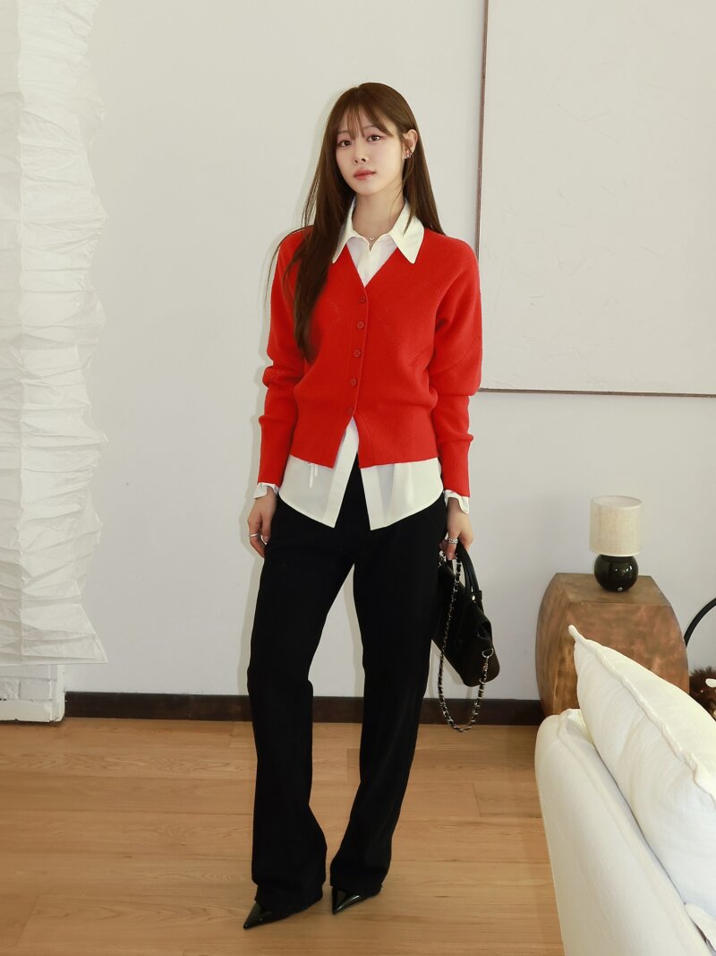 다이아 펀칭 브이넥 가디건