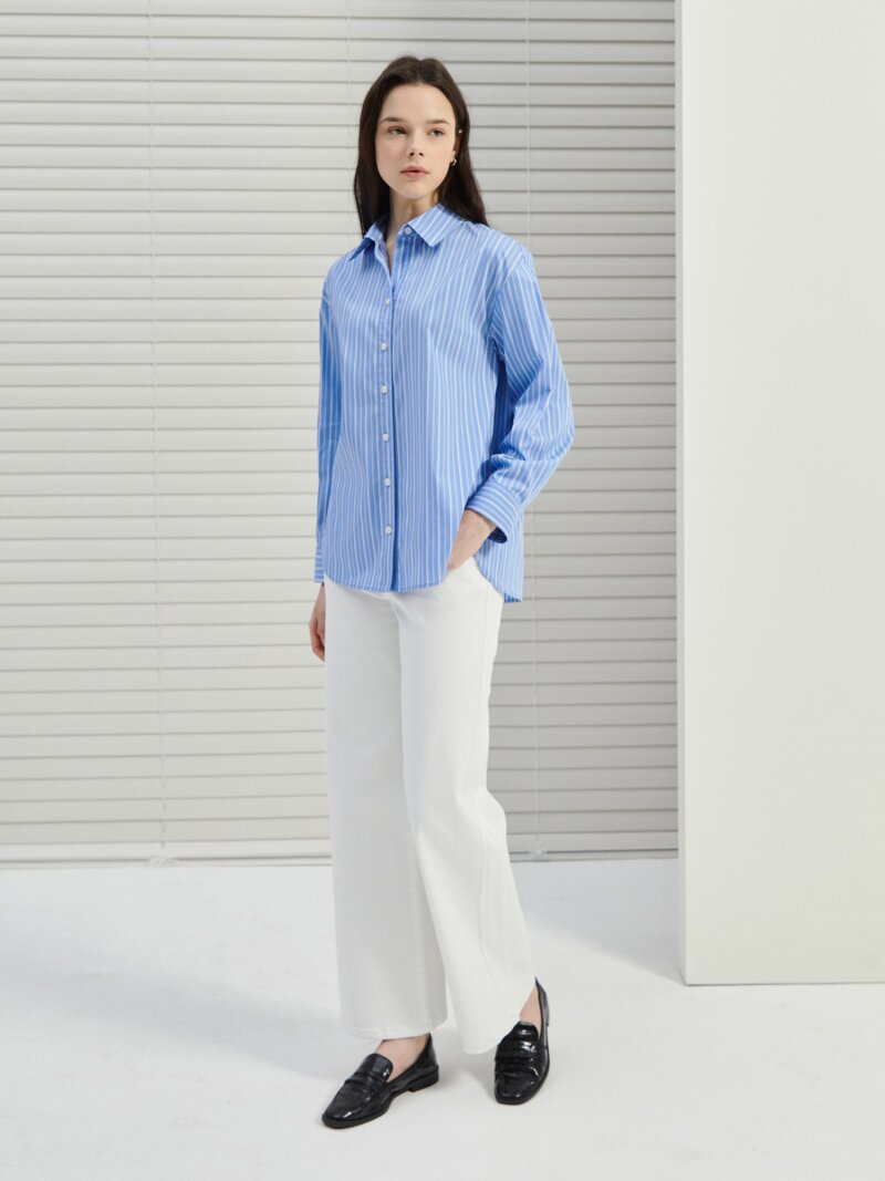 출근길의 셔츠, 가벼운 아우터, 정돈된 슬랙스.