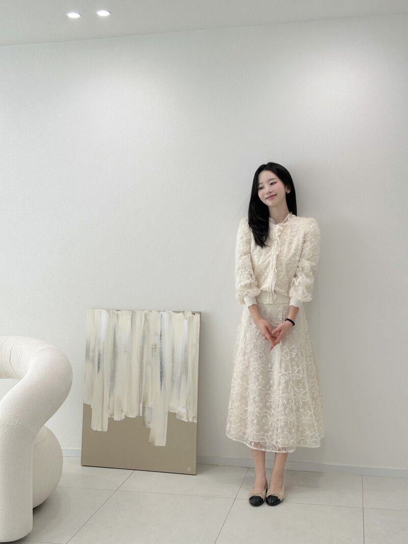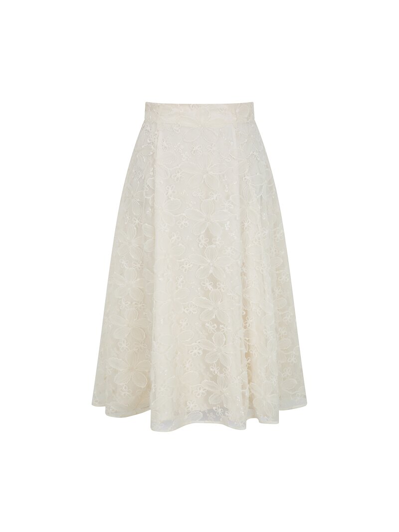 플라워 자수 플레어 스커트 (CREAM)