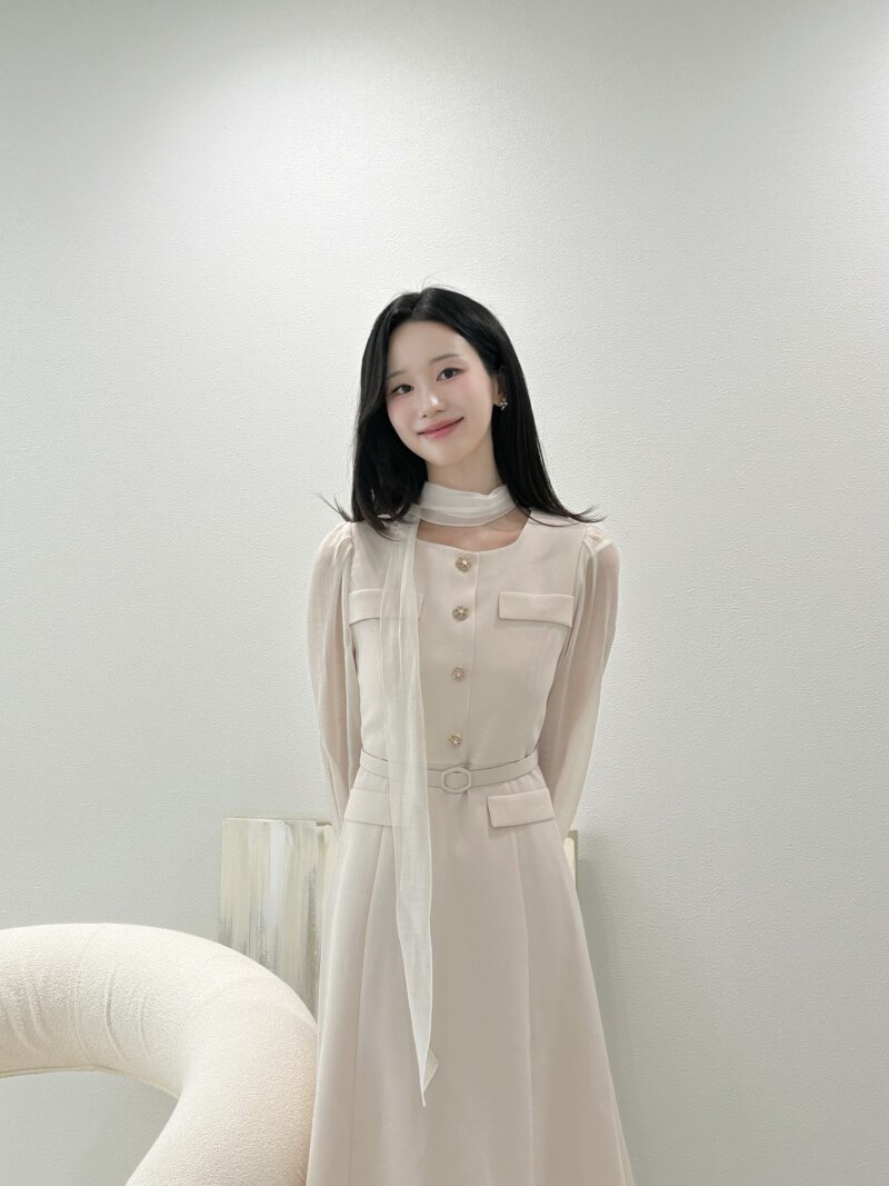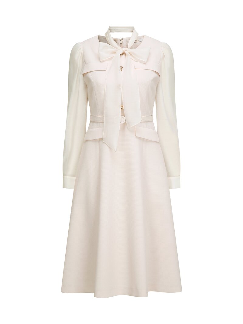 타이 시스루 슬리브 플레어 원피스 (LIGHT BEIGE)