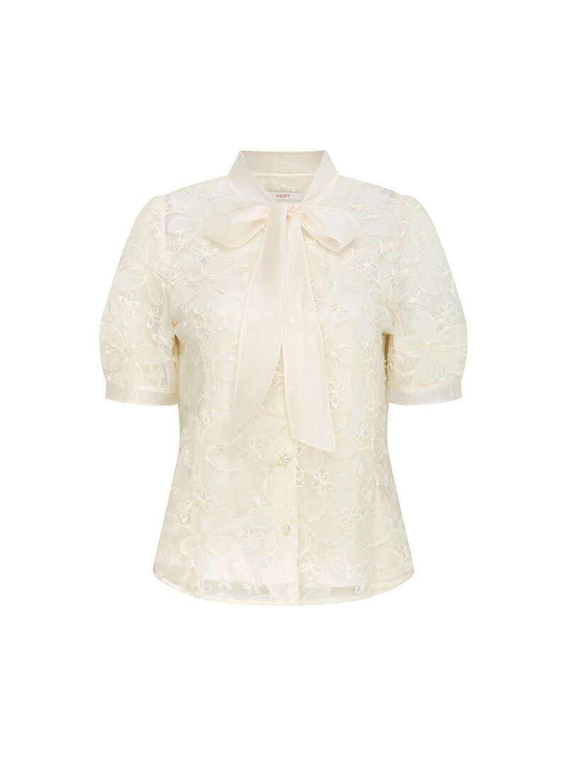 플라워 레이스 리본 타이 블라우스 (CREAM)