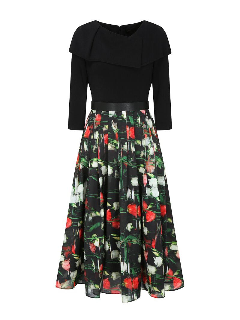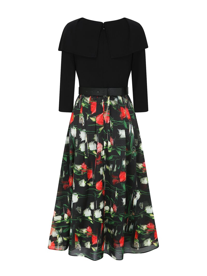 배색 케이프 칼라 니트 원피스 (PRINT BLACK)