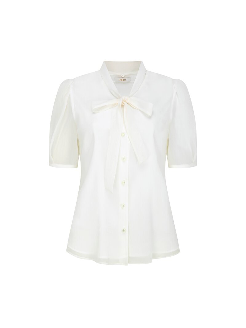 타이 퍼프 슬리브 브이넥 블라우스 (IVORY)