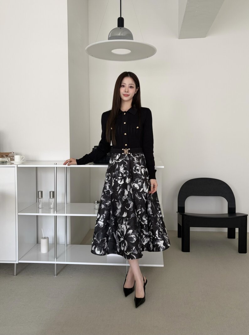 코튼 플라워 텍스쳐 플레어 스커트