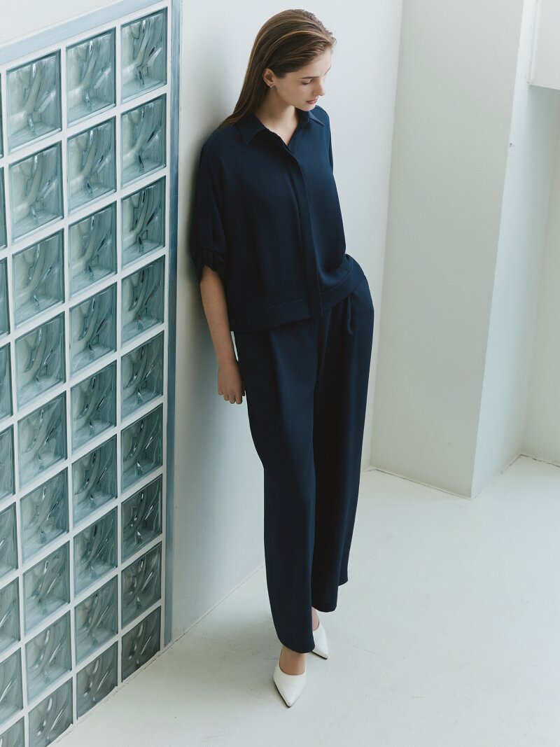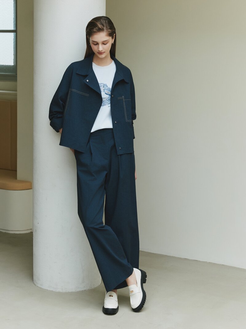 원턱 백 밴딩 와이드 팬츠 (INDIGO)