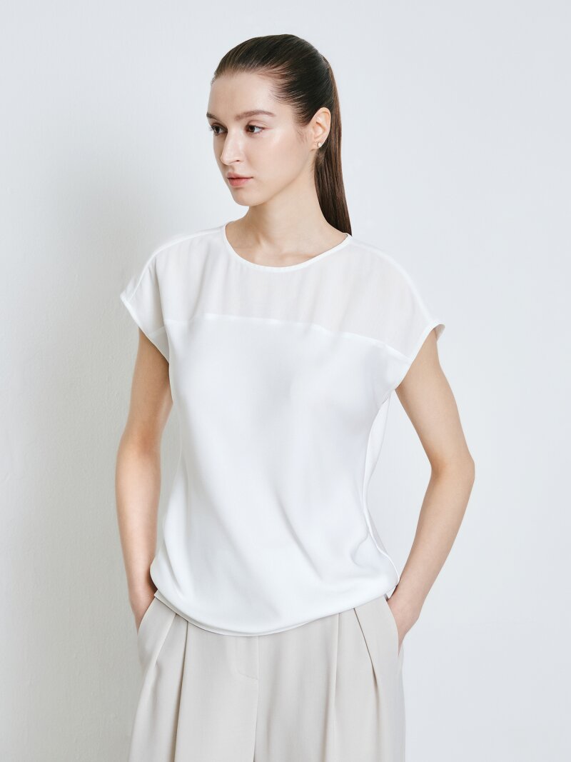 배색 캡 슬리브 블라우스 (IVORY)