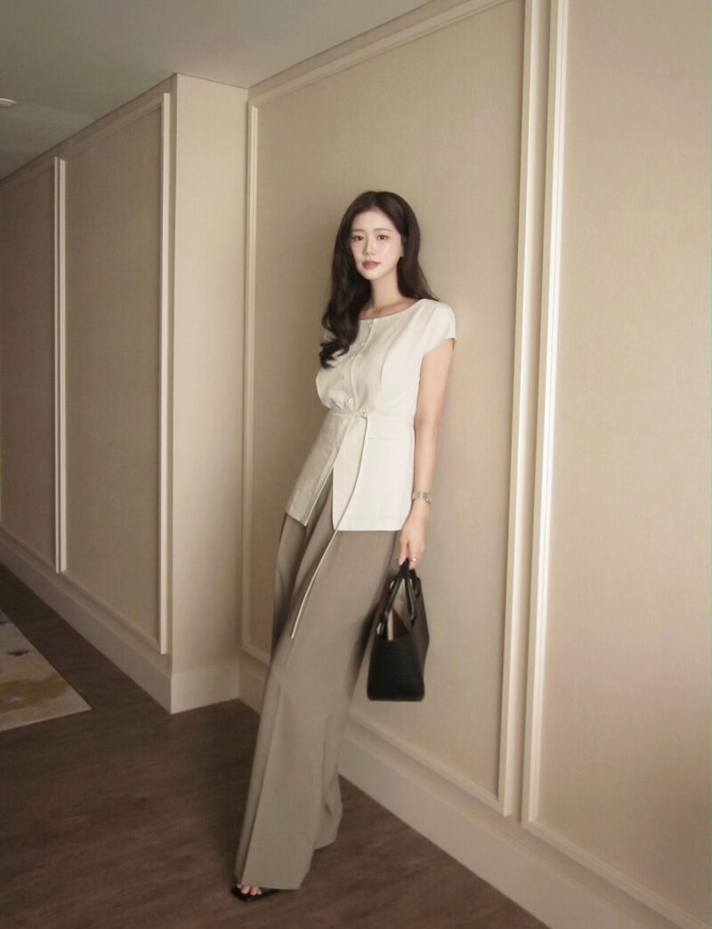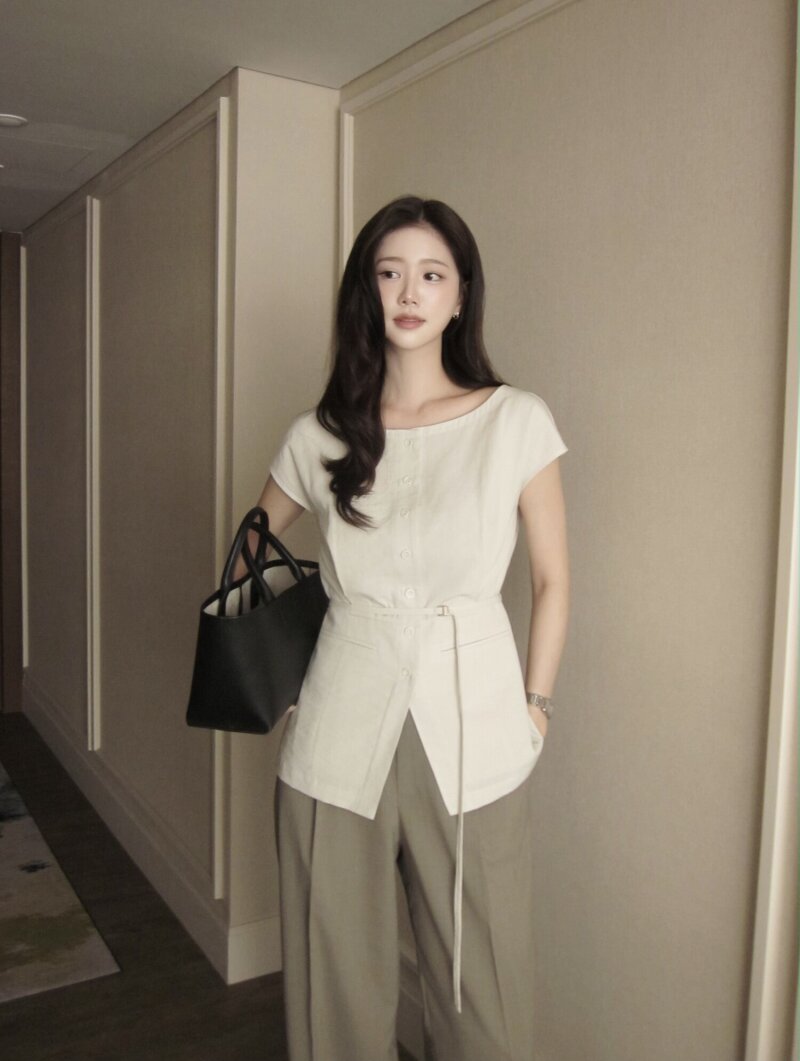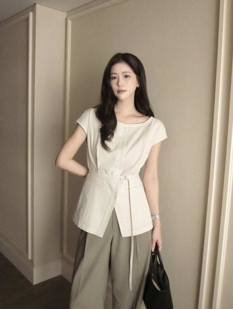 코튼 벨티드 캡 슬리브 블라우스