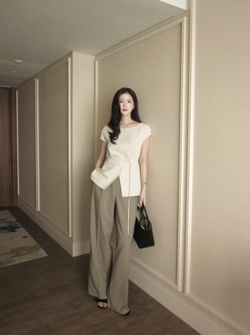 하이 웨이스트 원턱 와이드 팬츠