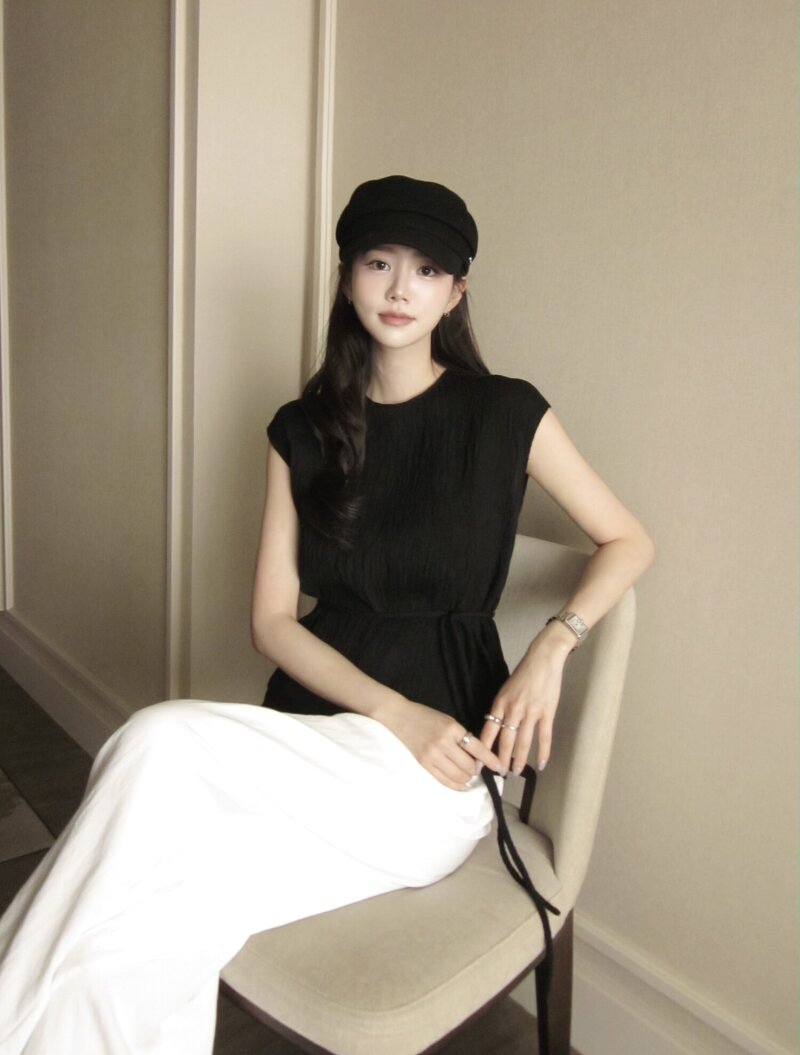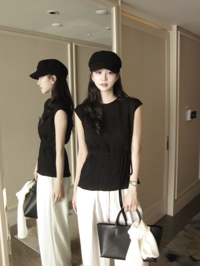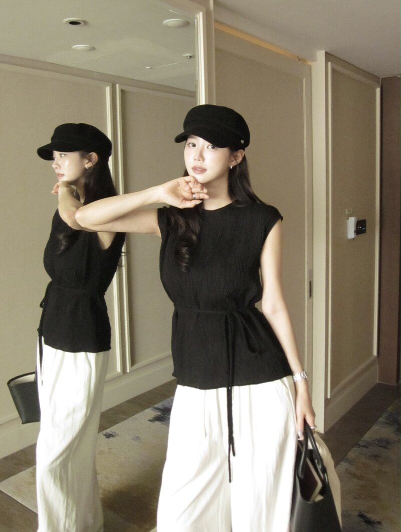링클 슬리브리스 블라우스