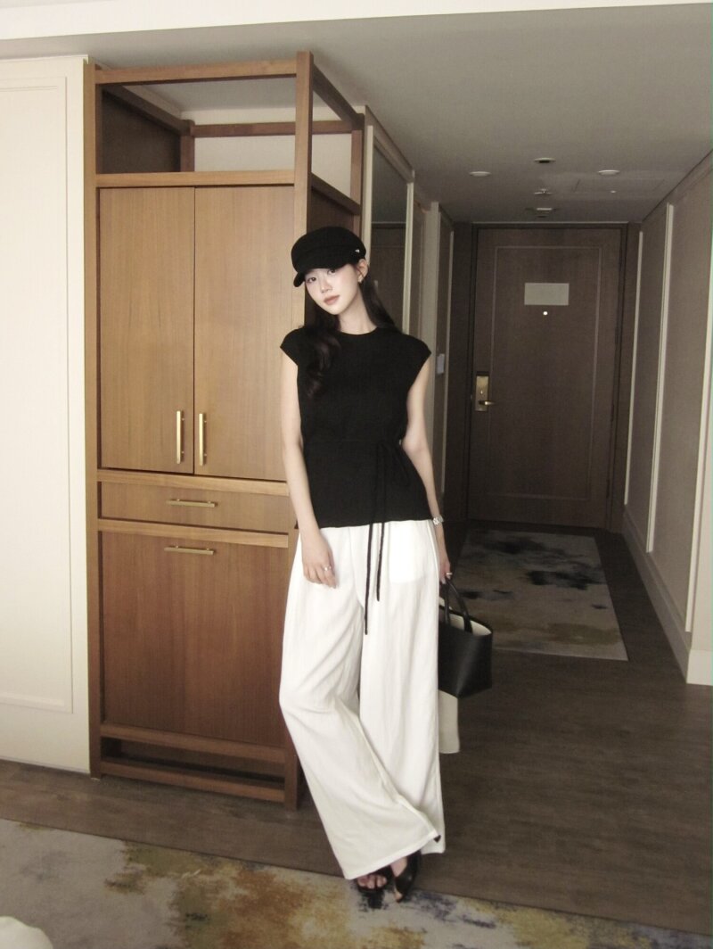 스트링 밴딩 와이드 팬츠