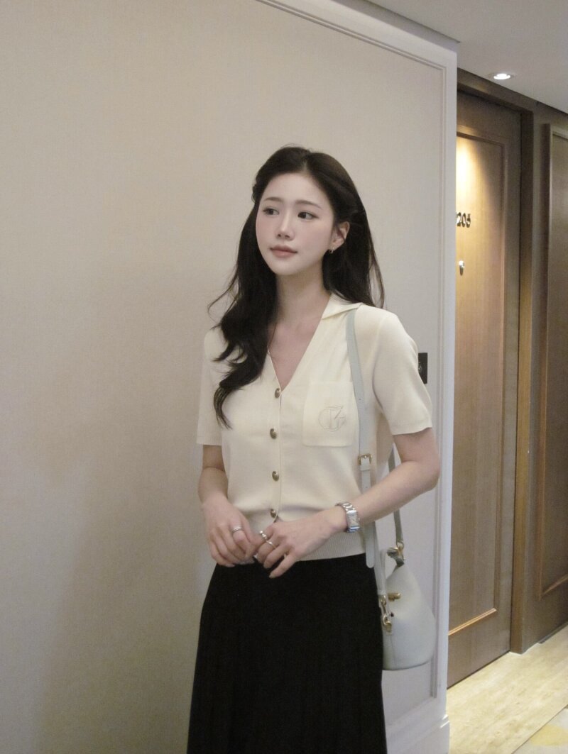 자수 포켓 브이 칼라 가디건