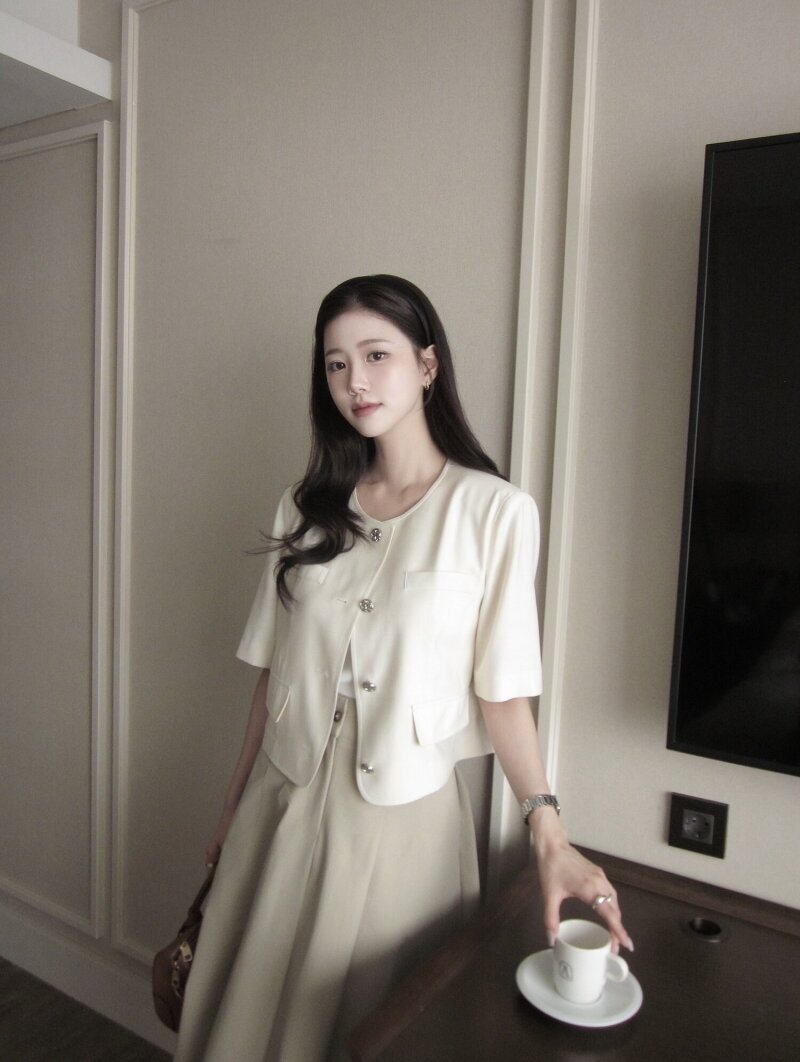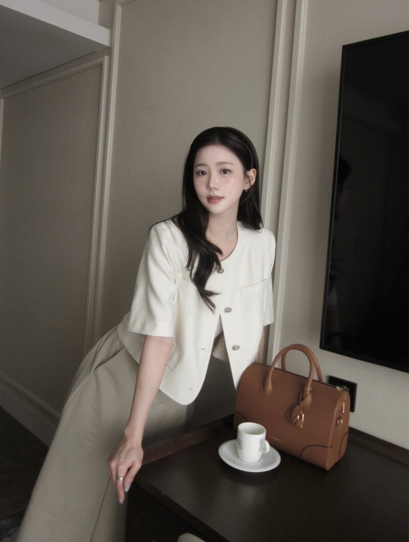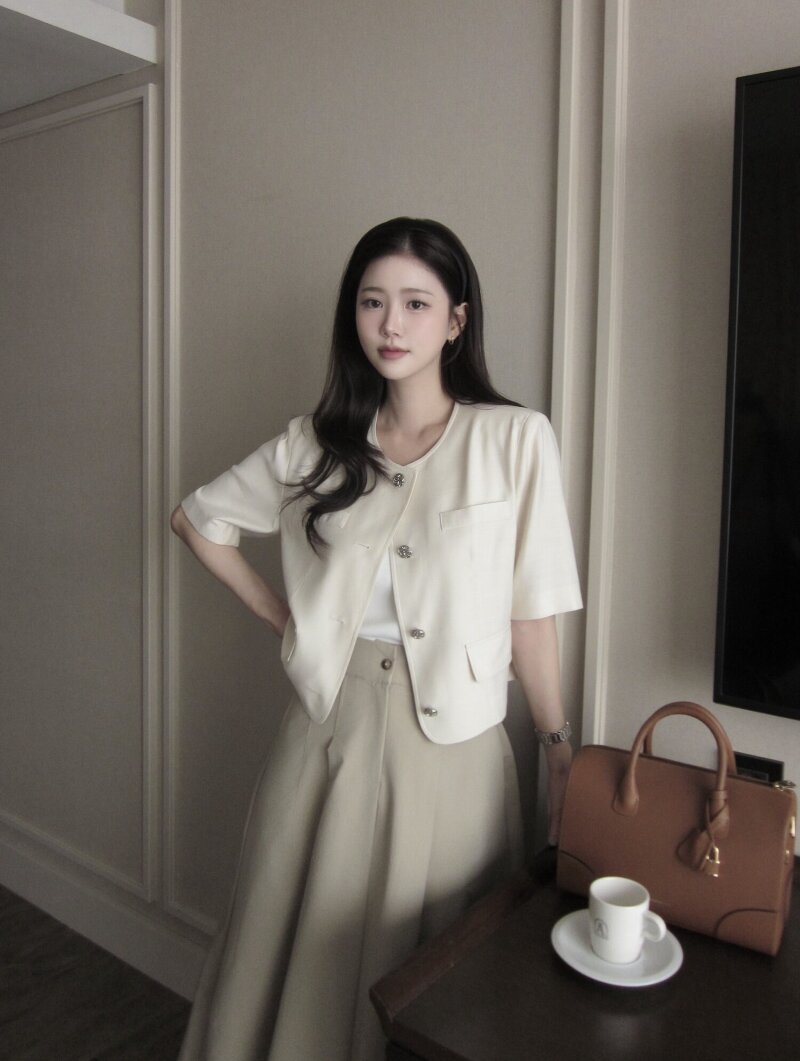 하프 슬리브 라운드넥 크롭 재킷