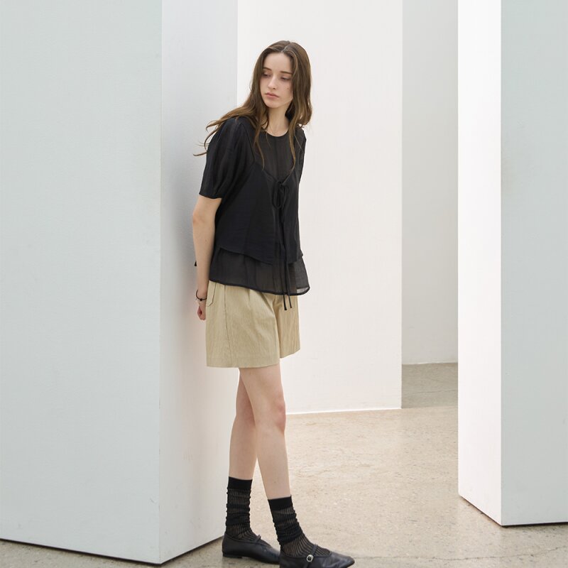 텐셀 하프 뷔스티에 블라우스세트 3COLOR