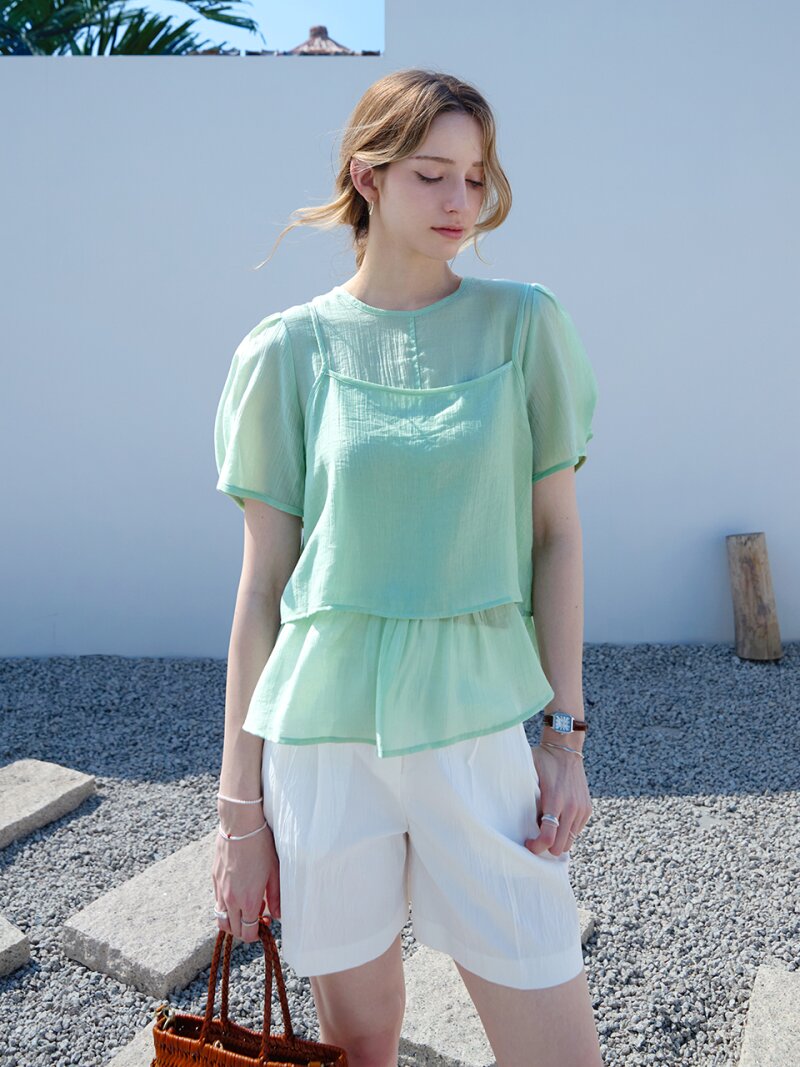 [SET] 텐셀 하프 뷔스티에 블라우스세트 GREEN