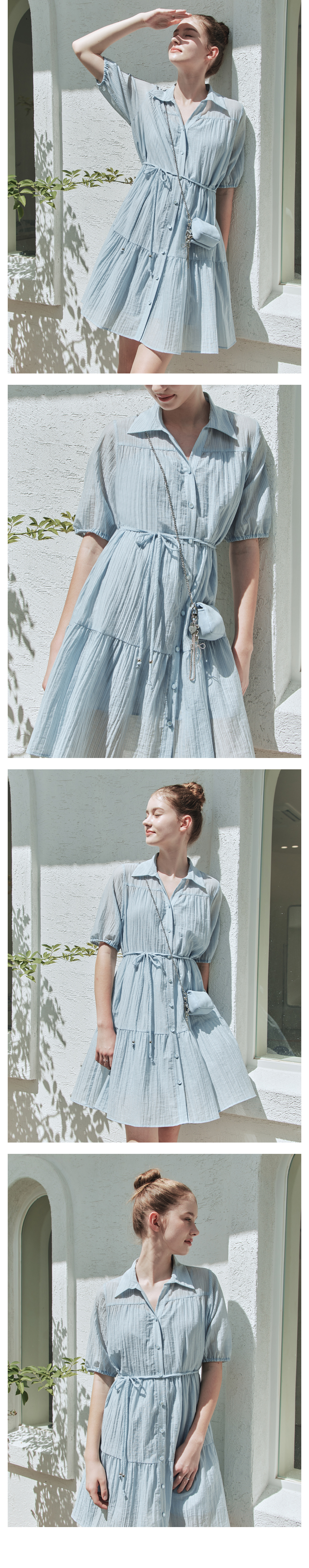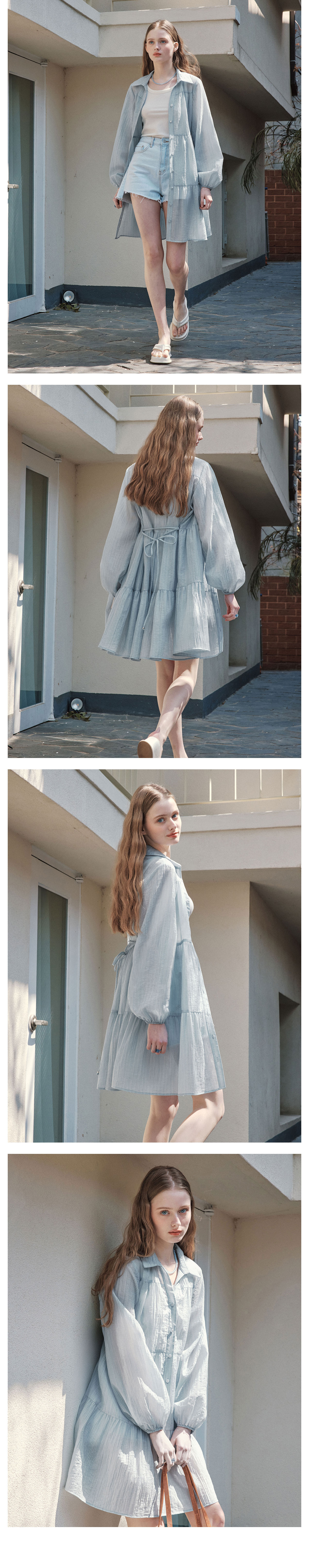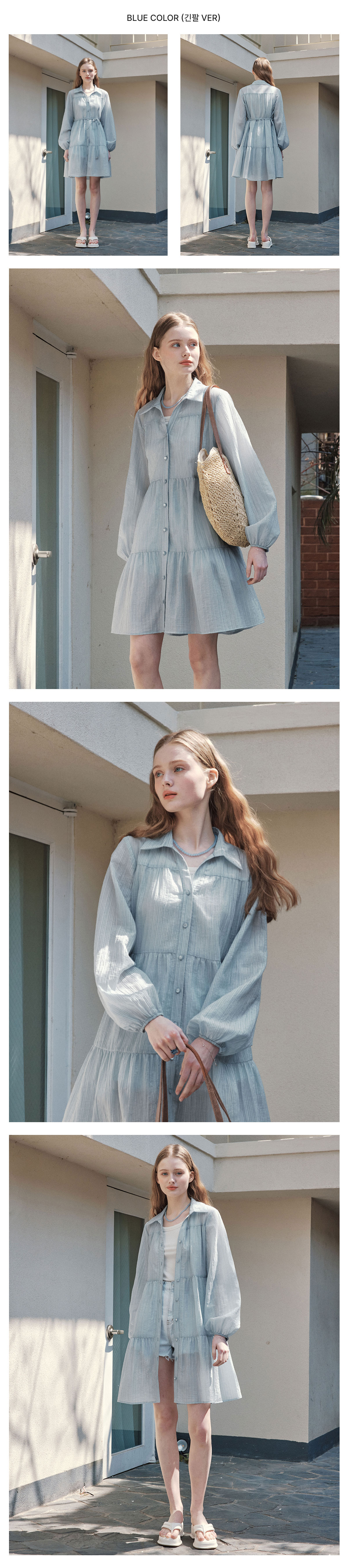 바바데이 [2TYPE] 레인 셔츠 원피스 / 블루